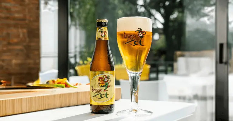 Esta Brugse Zot, cerveza rubia artesanal de alta fermentación es la última cerveza elaborada en el centro histórico de Brujas, lo que explica su nombre.