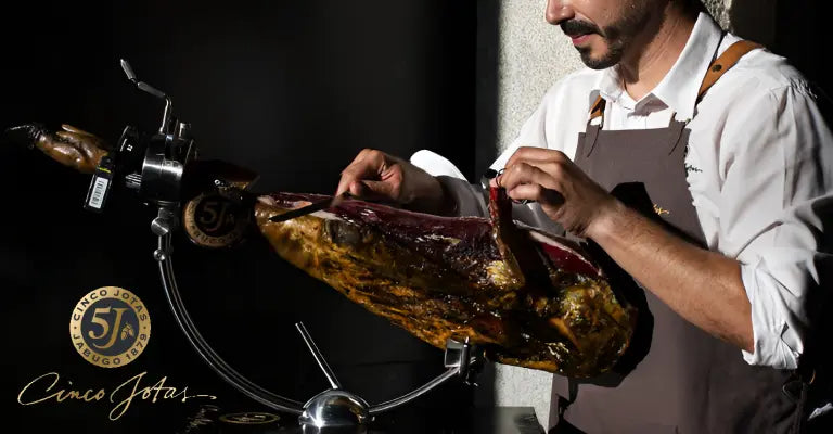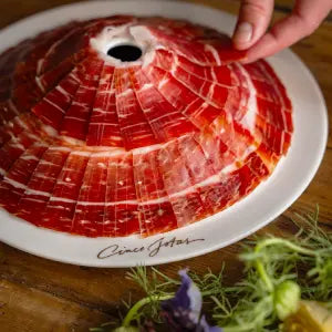 Cinco Jotas lleva el sabor de cerdos criados en libertad en Huelva hasta la mesa de tu hogar. Cada loncha es una obra que encapsula un sabor, textura y aroma inconfundible desde 1879.