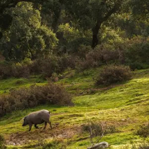 - El ecosistema único de la Dehesa proporciona una dieta rica y variada para los cerdos, compuesta principalmente por bellotas.