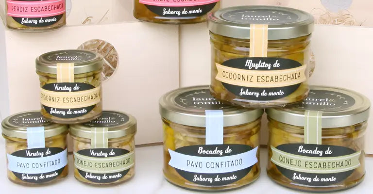 Las carnes de sus conservas (conejo, perdiz y codorniz) son bajas en grasas y se les añade aceite de oliva virgen extra. Reúnen toda la esencia de la dieta mediterránea.
