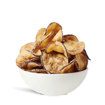 Elaboradas con berenjenas españolas, estas chips apoyan al campo nacional al utilizar únicamente productos de origen local. Se presentan como un producto único, sin comparación con ningún otro en el mercado.