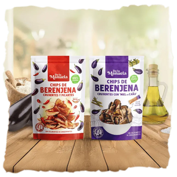 De La Manuela es una marca innovadora que ofrece un snack saludable, vegano y delicioso. Sus chips de berenjena son ideales para quienes buscan alternativas crujientes y nutritivas.