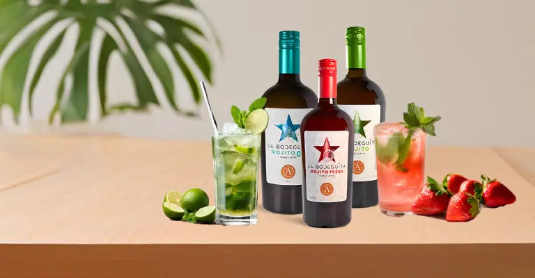El Mojito Fresa La Bodeguita, elaborado artesanalmente con las mejores materias primas sobre una base de ron dorado mediterráneo de elaboración propia, selección de fresas nacionales, menta del norte de África, selección de limas y limones y azúcar de caña procedente de Sudamérica, mezclados artesanalmente para sacar lo mejor de cada producto sin procesos artificiales.