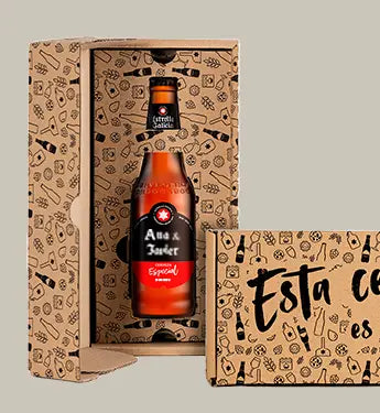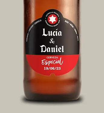 Descubre la magia de la cerveza personalizada. Con nuestras opciones de Estrella Galicia tendrás la posibilidad de diseñar la botella perfecta para cualquier ocasión. Ya sea para un regalo original o simplemente para sorprender a alguien especial, nuestras botellas de con etiqueta personalizada son la elección ideal.