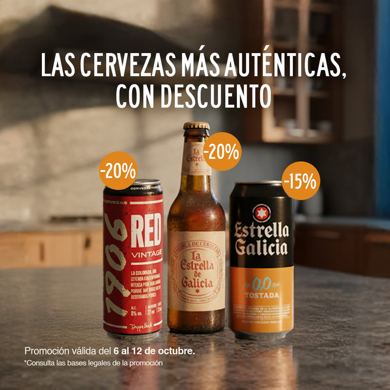 ¿Y si te decimos que en Bigcrafters también tenemos muchas de las mejores cervezas con descuento? Pues, así es. Aquí encontrarás ofertas en nuestras grandes marcas de cerveza, con las que podrás comprar Estrella Galicia, incluyendo Estrella Galicia 0,0, y 1906 a mejor precio. Y aún hay más: en Bigcrafters, también tenemos para ti varias de las cervezas craft de Europa más top a precios increíbles.