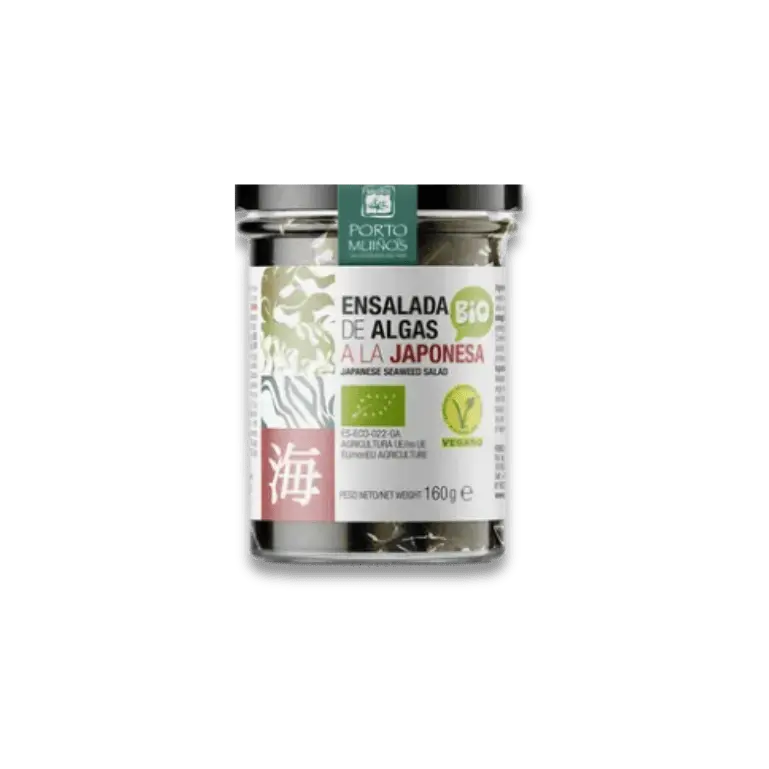 - Un tarro de ensalada de algas a la japonesa.