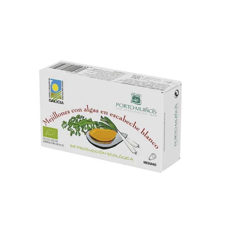 Este lote “Mejillones con algas” de Porto-Muiños es una exquisita muestra de la tradición gallega que combina un método de cultivo sostenible con el mestizaje de sabores en conserva. El pack no solo ofrece un deleite para el gusto, sino también una conexión profunda con la herencia cultural y gastronómica de Galicia. ¡Una experiencia que invita a saborear lo auténtico!
