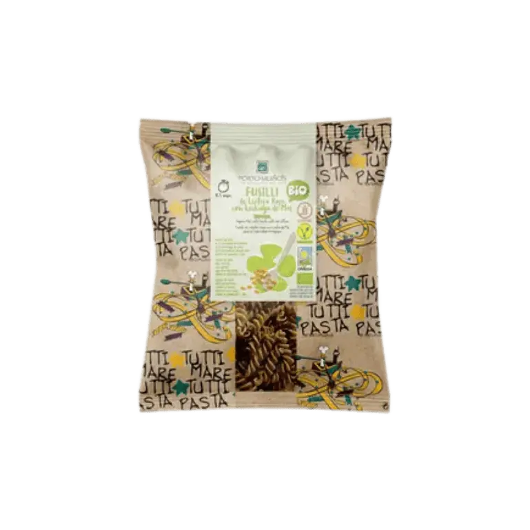 - Una bolsa de fusilli de lenteja roja con lechuga de mar ECO de 200 g (pasta ecológica sin gluten).
