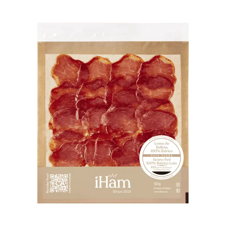 - 2 sobres de lomo de bellota 100% ibérico de iHam de 50 g.