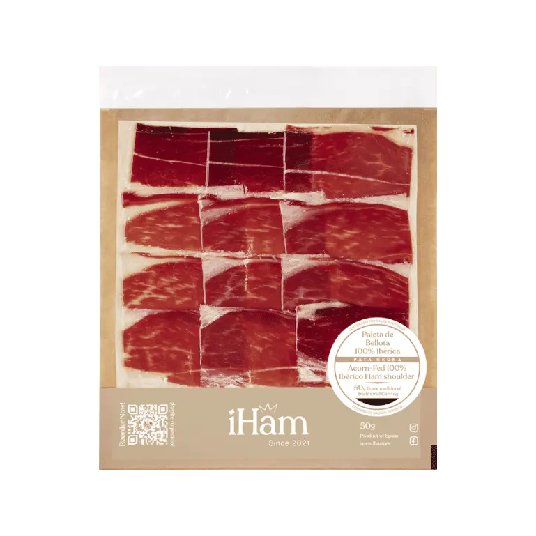 - 4 sobres de paleta de bellota 100% ibérico de iHam de 50 g.